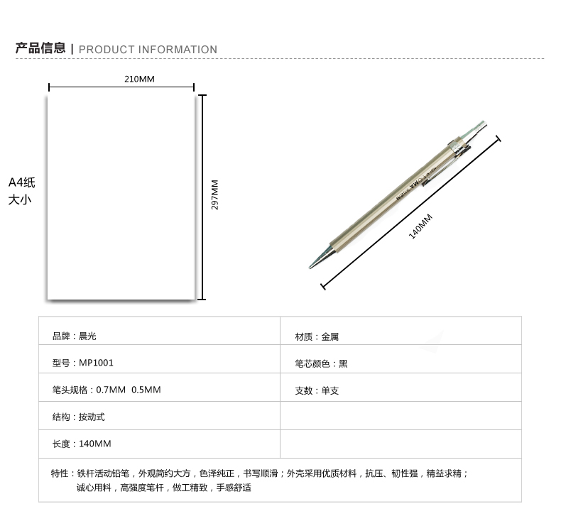 晨光 MP1001B(黑)铁杆自动铅笔0.7