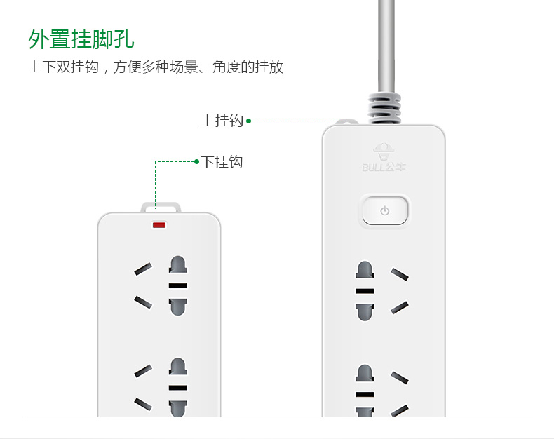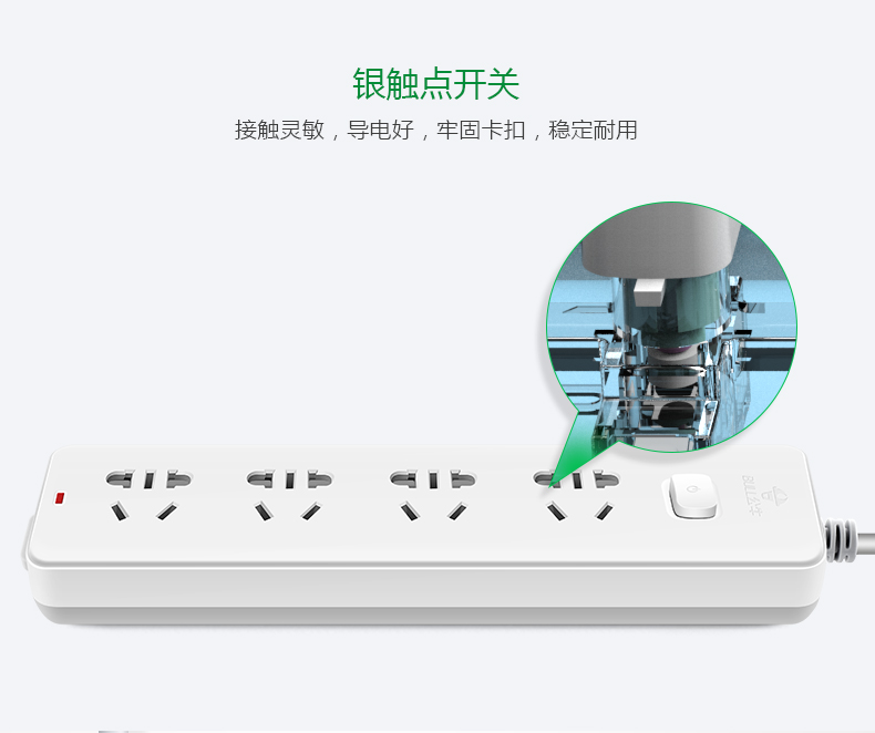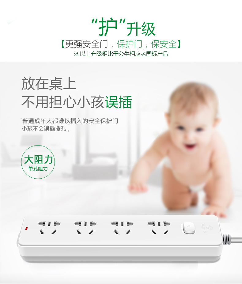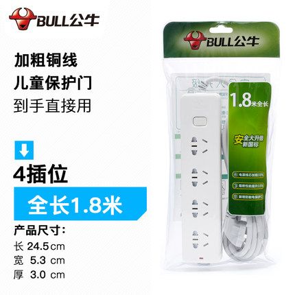 公牛GN-410(白色)新国标 四位总控 电源插线板1.8M...