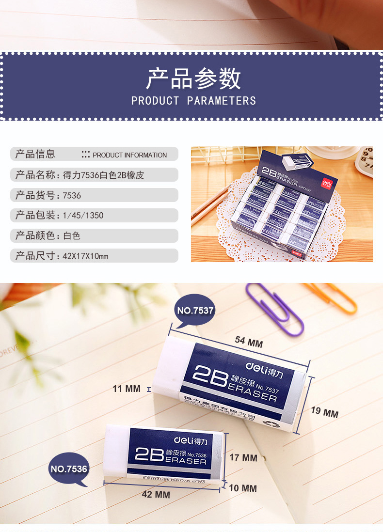 得力(deli) 7536-橡皮擦(白)