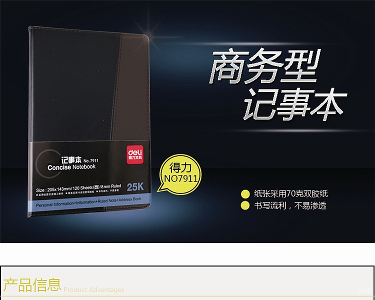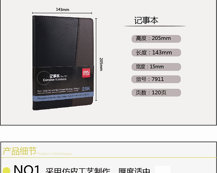 得力(deli) 7911(黑)皮面记事本-120页-25K
