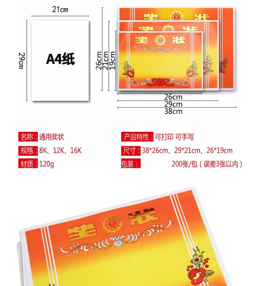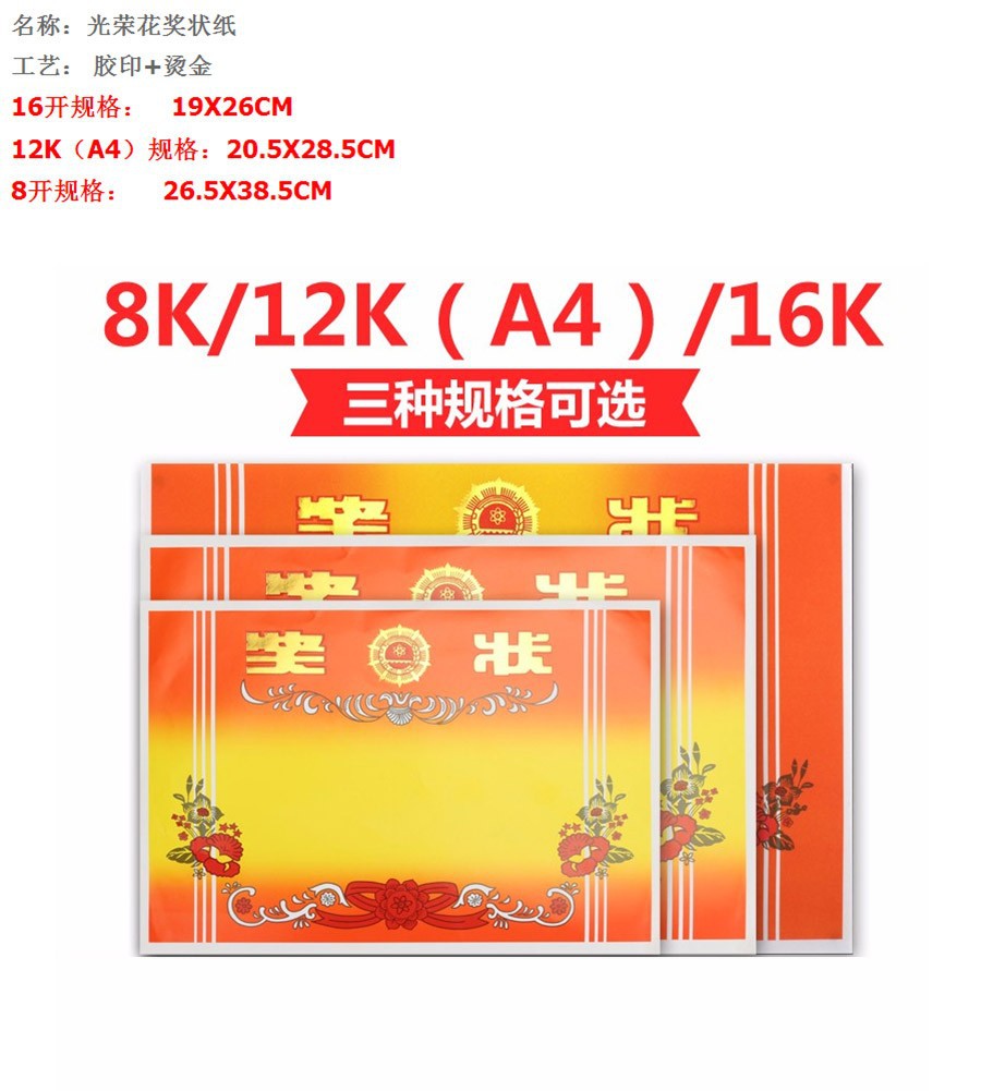 国产 光荣花奖状纸 8K (38*26cm) 200张/包