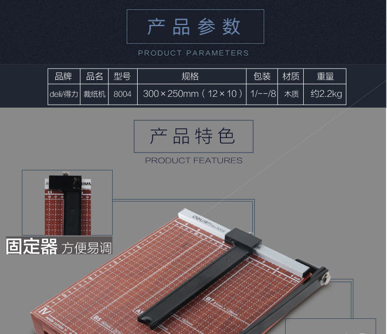 得力(deli) 8004(棕)木质切纸机12″×10″