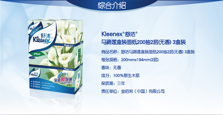 舒洁(Kleenex) 2312-02马蹄莲盒装面巾纸-20...