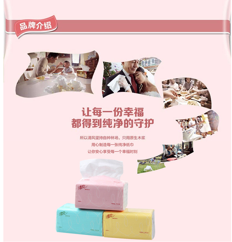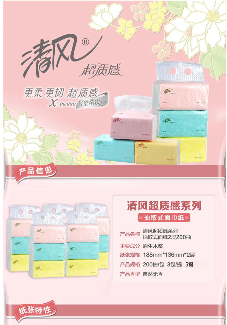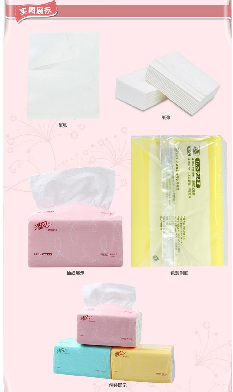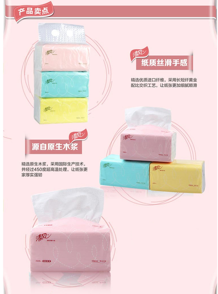 商用-清风 BR38AC双层糖果色塑包面纸-200抽