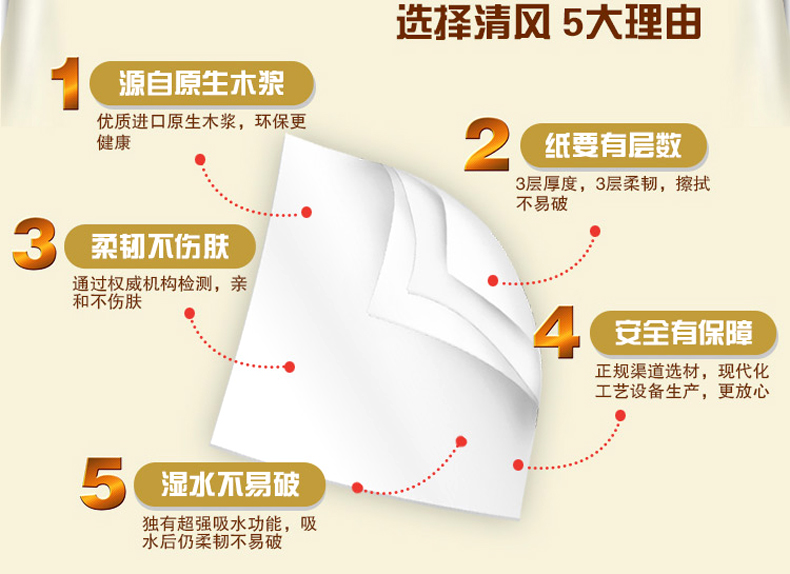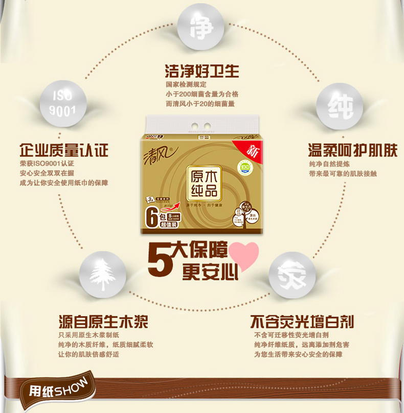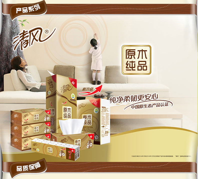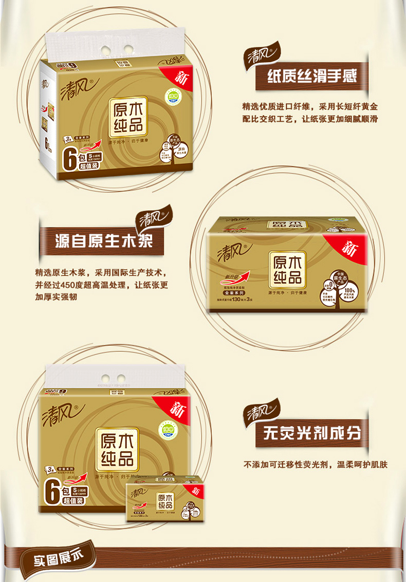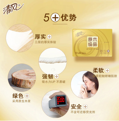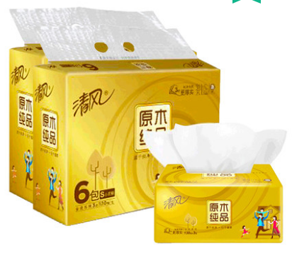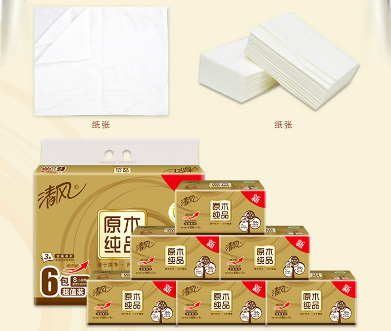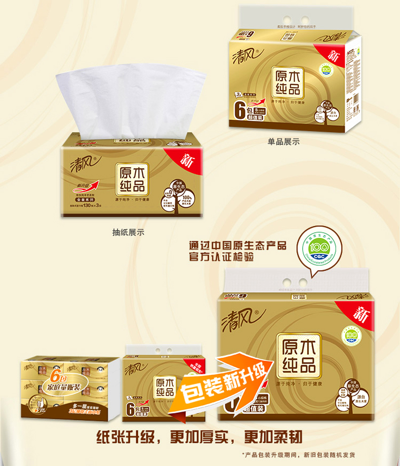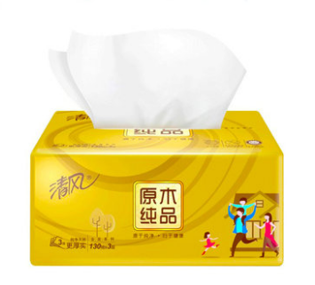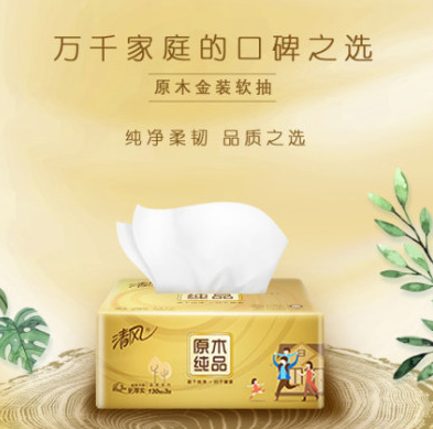 民用-清风 BR65SJ1三层原木纯品金装塑包面纸-130抽...