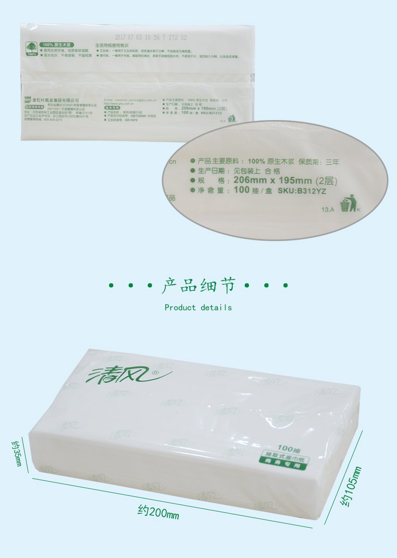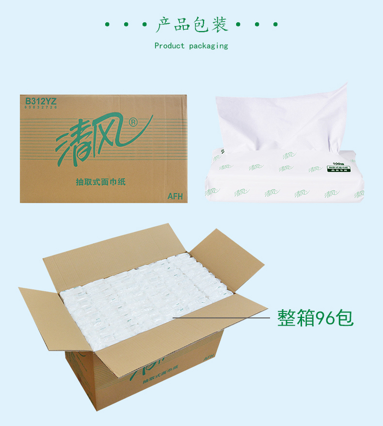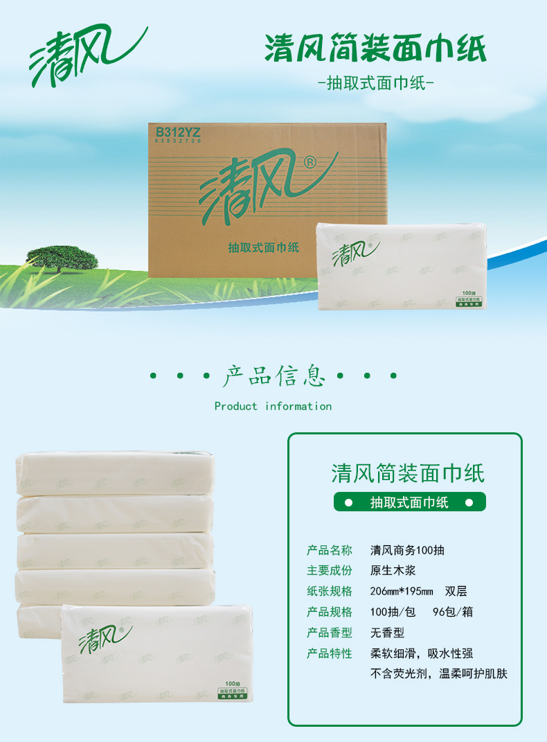 商用-清风 B312YZ双层塑包面纸-100抽