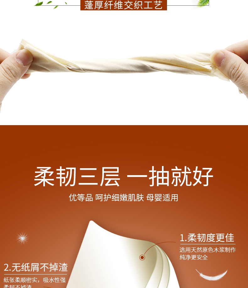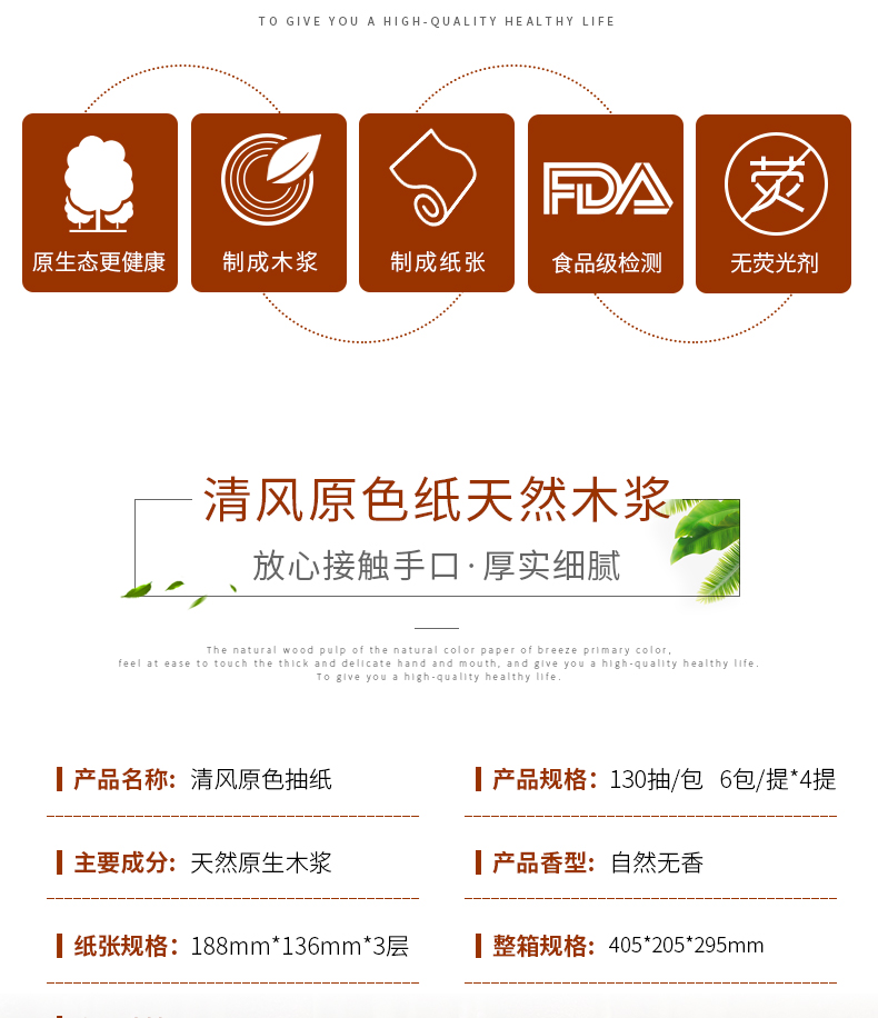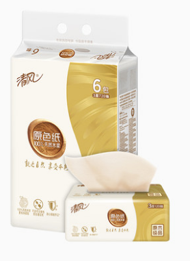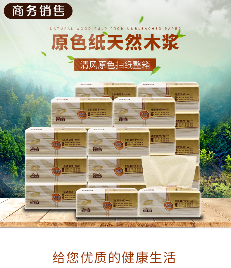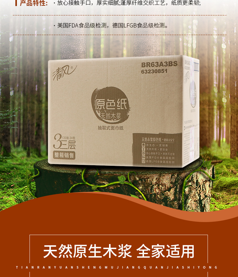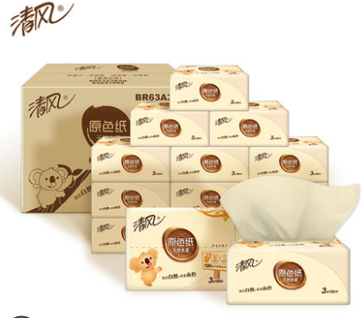 商用-清风BR63A3BS原色三层塑包面纸-130抽