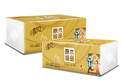 民用-清风BRA5SJ1原木纯品金装3层塑包面纸-130抽