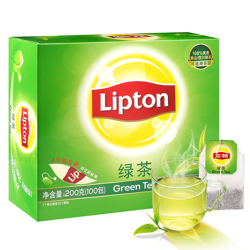 立顿/Lipton 绿茶 清新 袋泡茶叶茶包 200G/盒