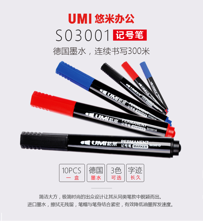 悠米 经典小双头记号笔 S03102D黑色 10支/盒