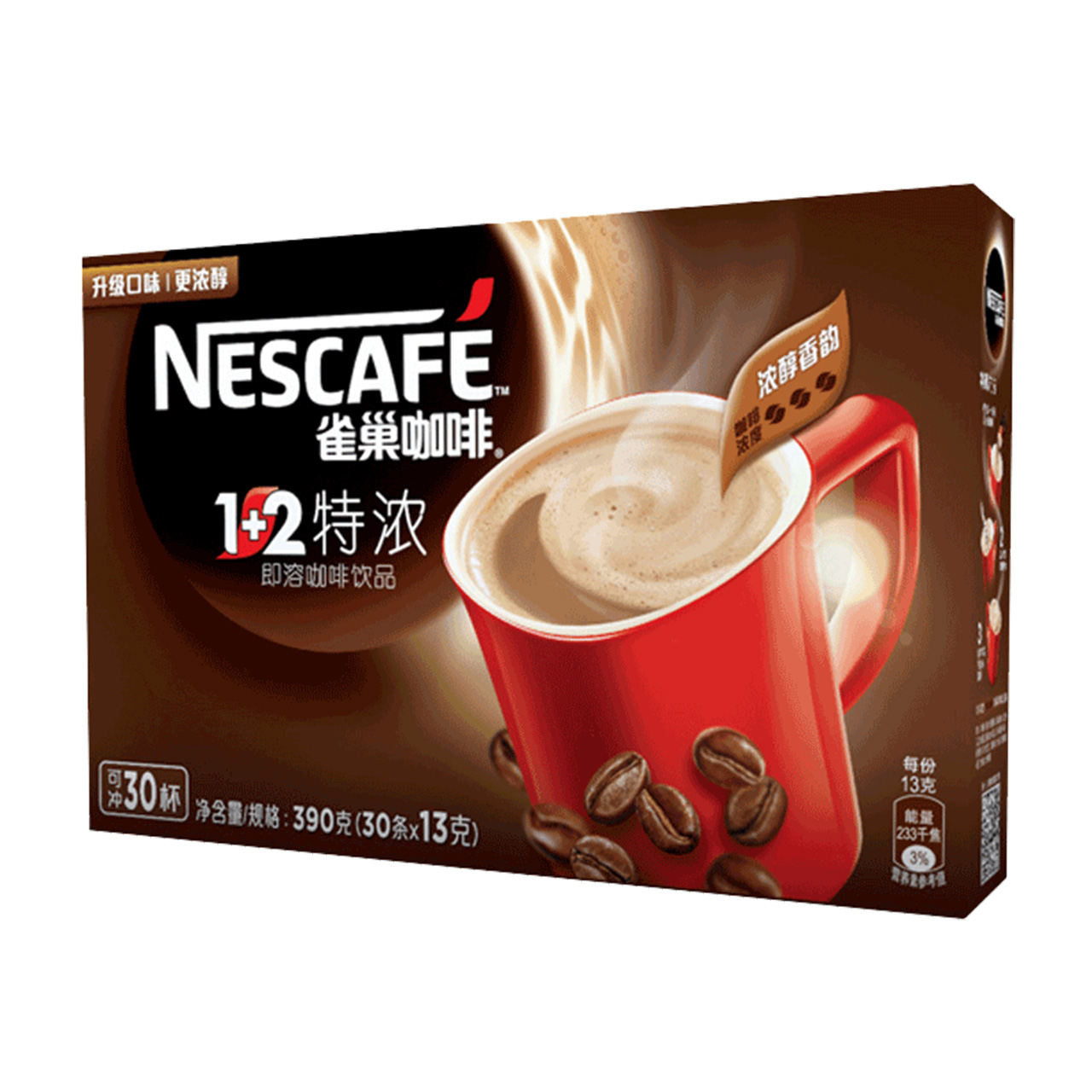 雀巢速溶咖啡1+2 特浓13g*30条/盒