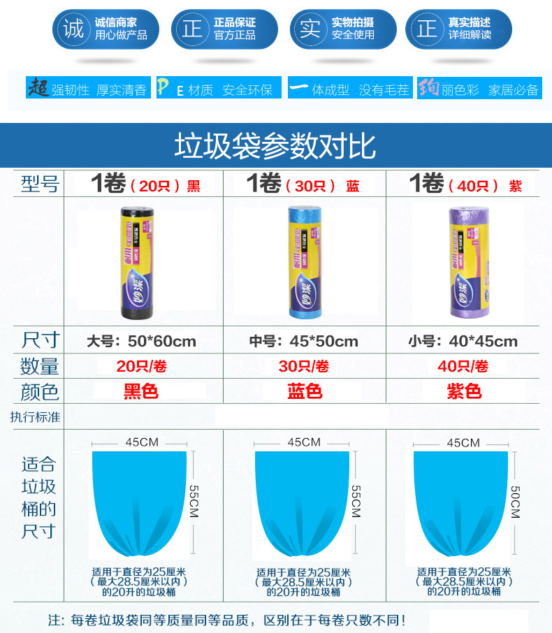 蓝色加厚新料垃圾袋(30卷/包)100*120/50*60
