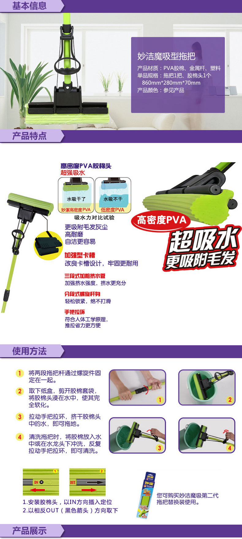 妙洁 MOJ-TR魔吸型胶棉拖把