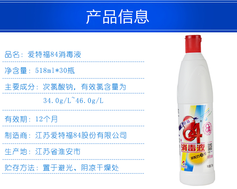 爱特福 84消毒液518ml 30瓶/箱