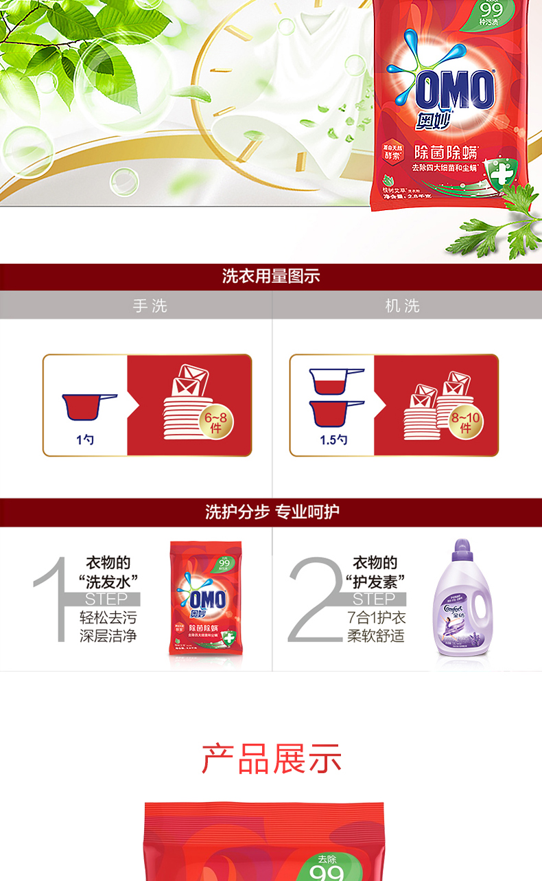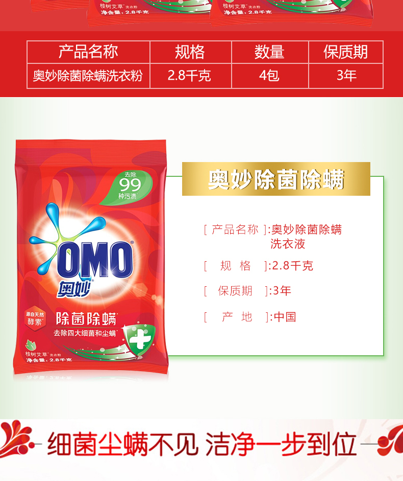 奥妙(OMO) 除菌除螨洗衣粉1800g