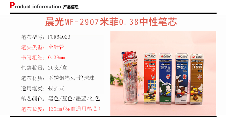 晨光(M&G) MF2907C中性替芯米菲3D全针管0.38