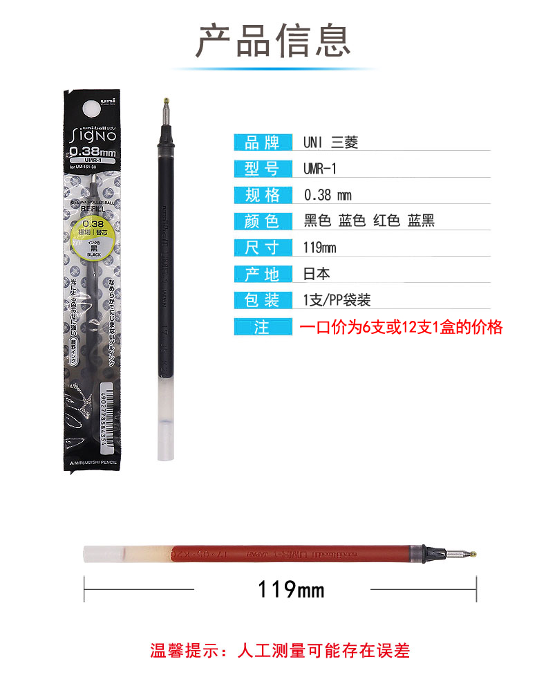 三菱(Uni) UMR-1笔芯 适用于UM-151 0.38...