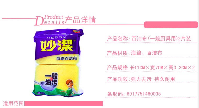 妙洁 MHS2海绵百洁布(一般厨具用)2片装