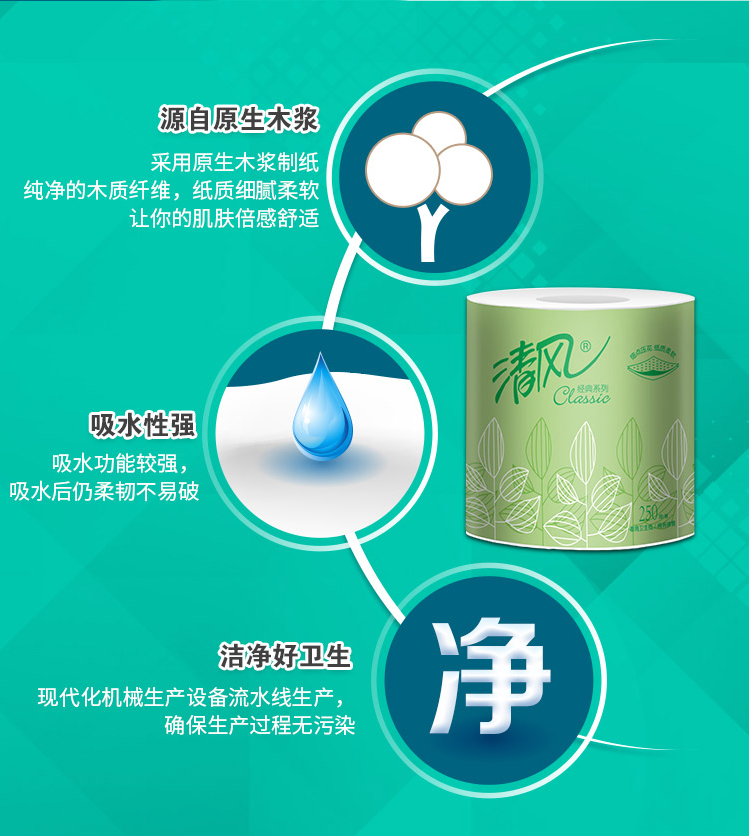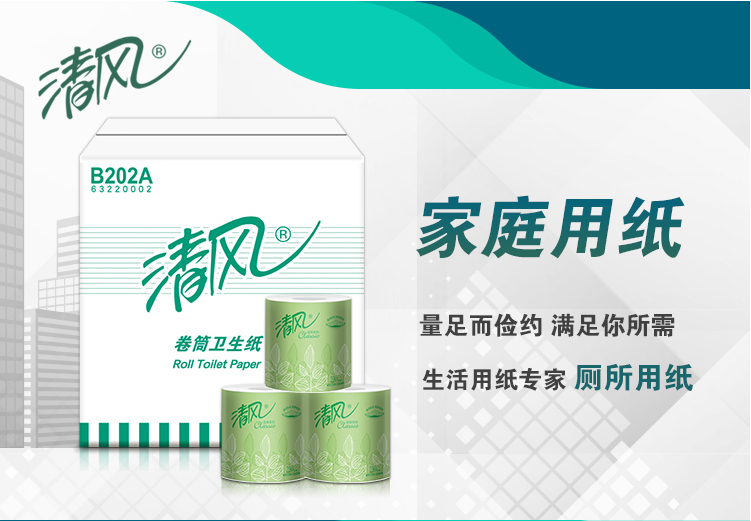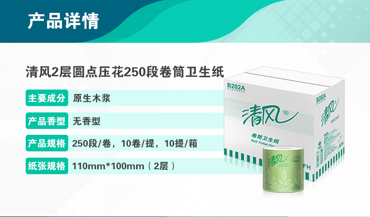 商用-清风 B202A双层圆点压花卷筒卫生纸-250段