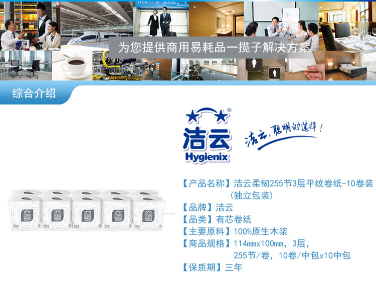 商用-洁云(Hygienix) 116611柔韧平纹卷筒卫生...