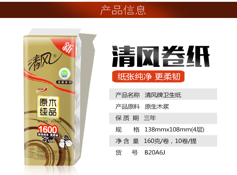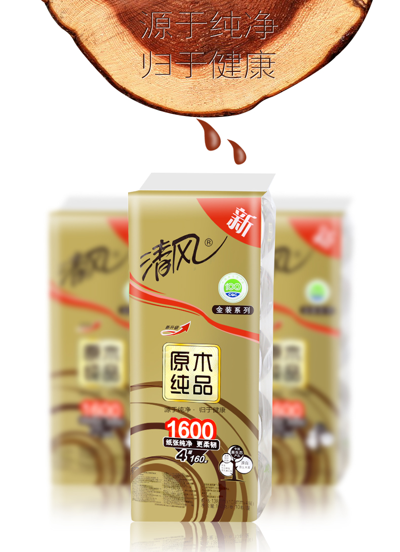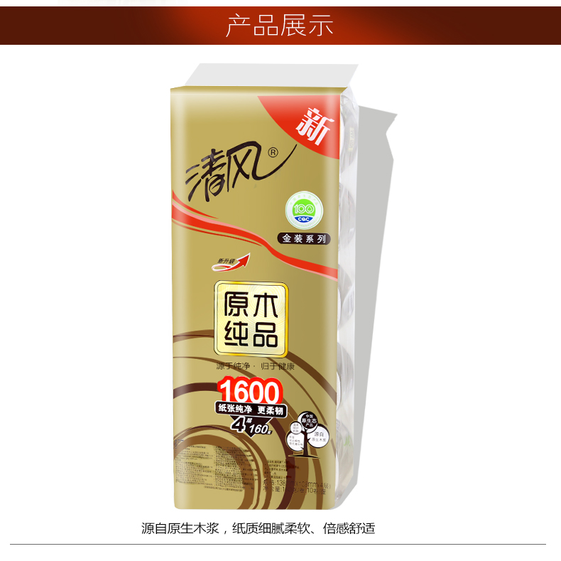 民用-清风 B20A6JN四层金装原木卷筒卫生纸-160克 ...