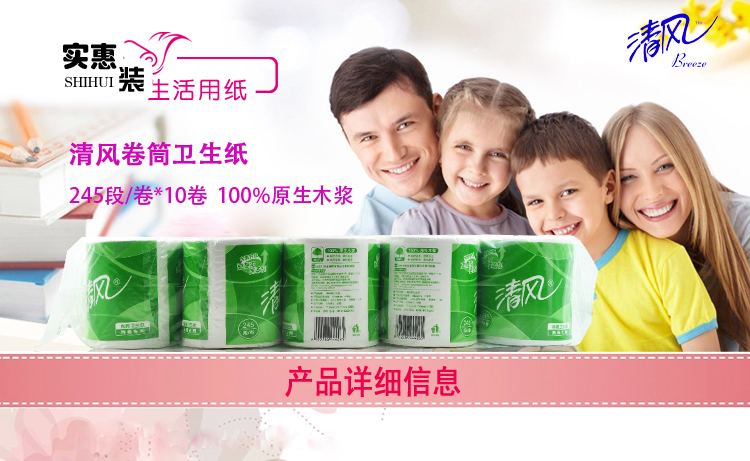 商用-清风 B22AA3S三层平纹卷筒卫生纸-245段 4...
