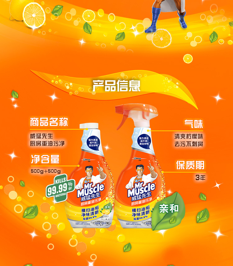 威猛先生(Mr Muscle) 厨房重油污净(柠檬)双包装(...