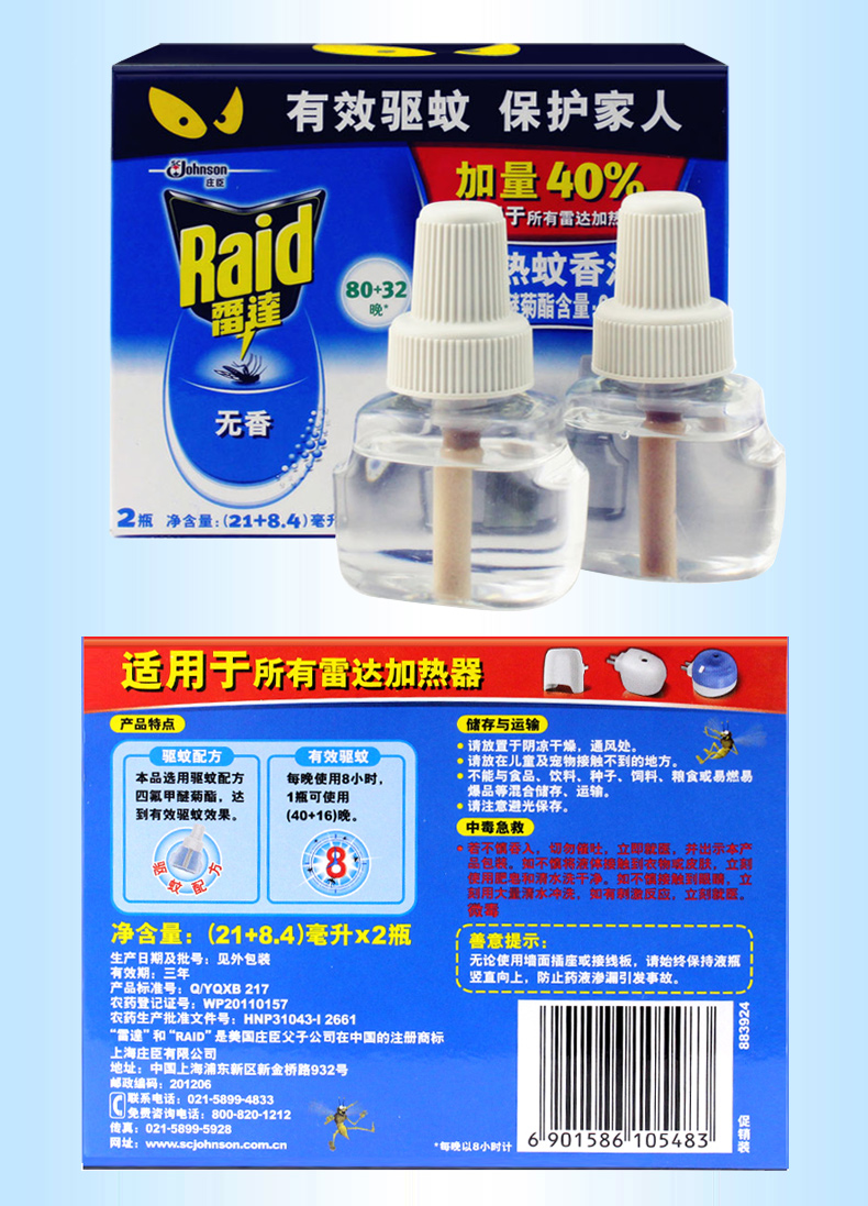 雷达320590电热蚊香液40晚2瓶无香加量32晚促销装