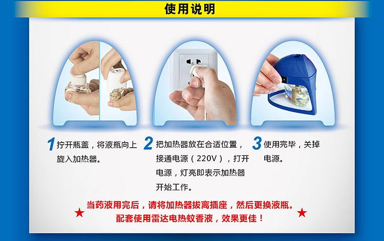雷达321004拖线式电热蚊香液加热器+40晚无香套装