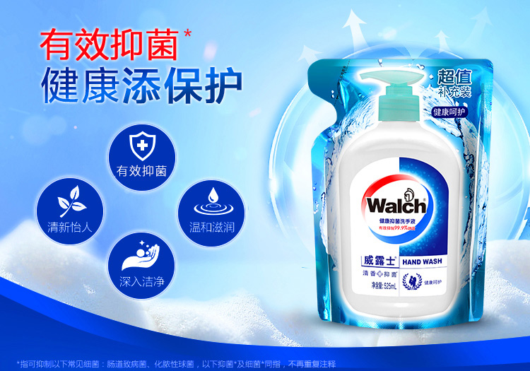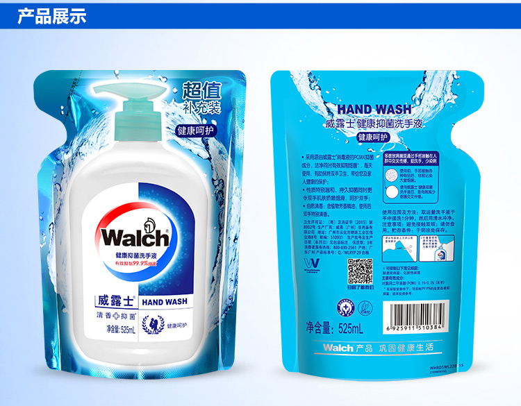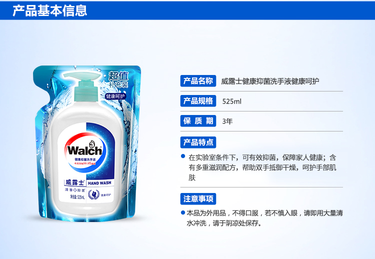 威露士(Walch) 健康洗手液(健康呵护蓝色袋装)525M...