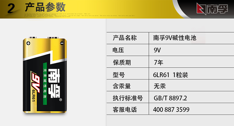 南孚(NANFU) 9VA-1B电池挂卡装6LR61