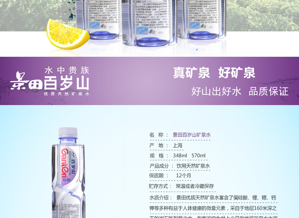 百岁山(ganten) 小瓶矿泉水348ml*24瓶