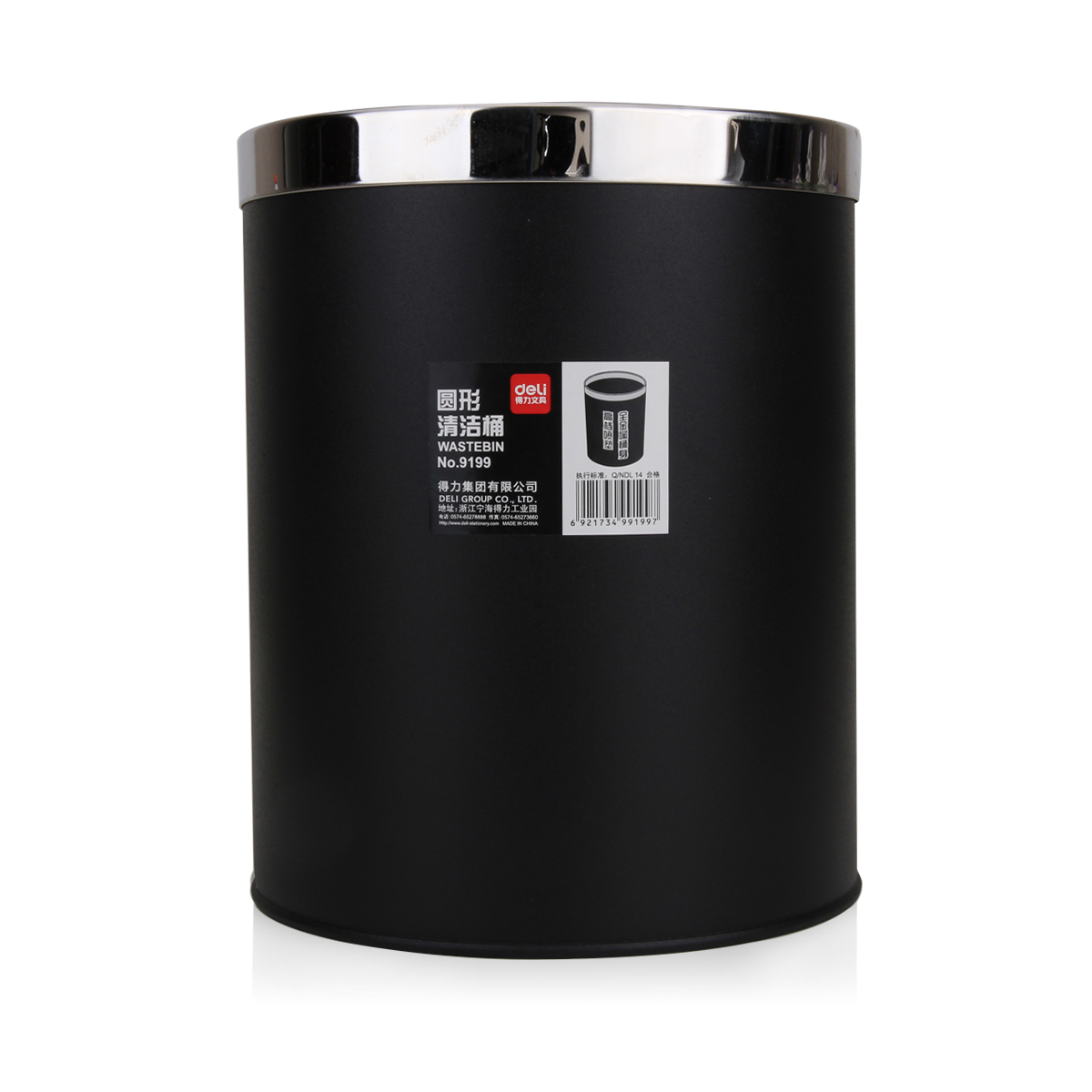 得力 9199 办公家居经典圆形直桶不锈钢垃圾桶