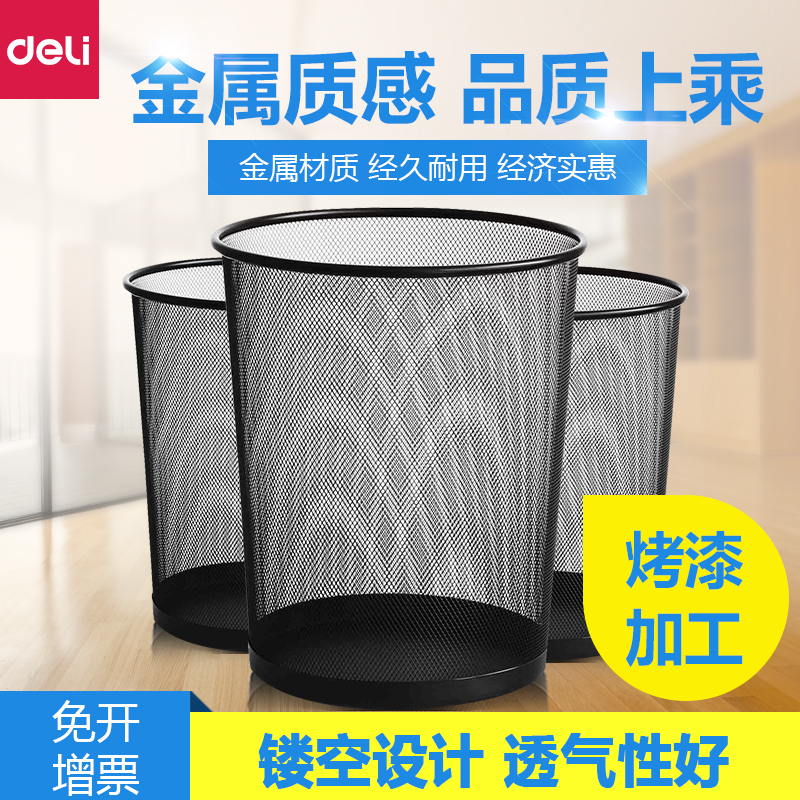 得力9189稳固 高度34cm高品质铁网圆纸篓 大号