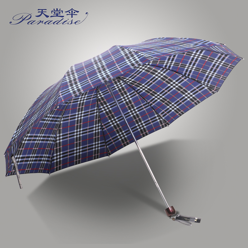 天堂伞 苏格兰风格 格子三折雨伞 F藏青 339S