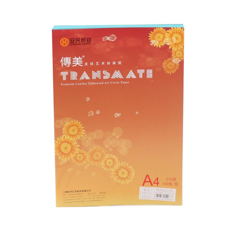 传美封页纸皮纹纸 210G A4 100张/包 蓝色