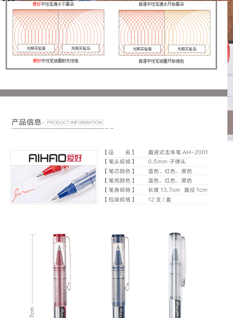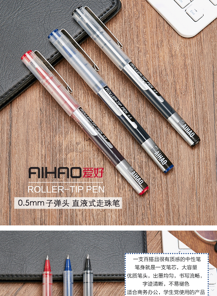 爱好(AIHAO)AH-2001(黑)签字笔中性笔/直液式走...