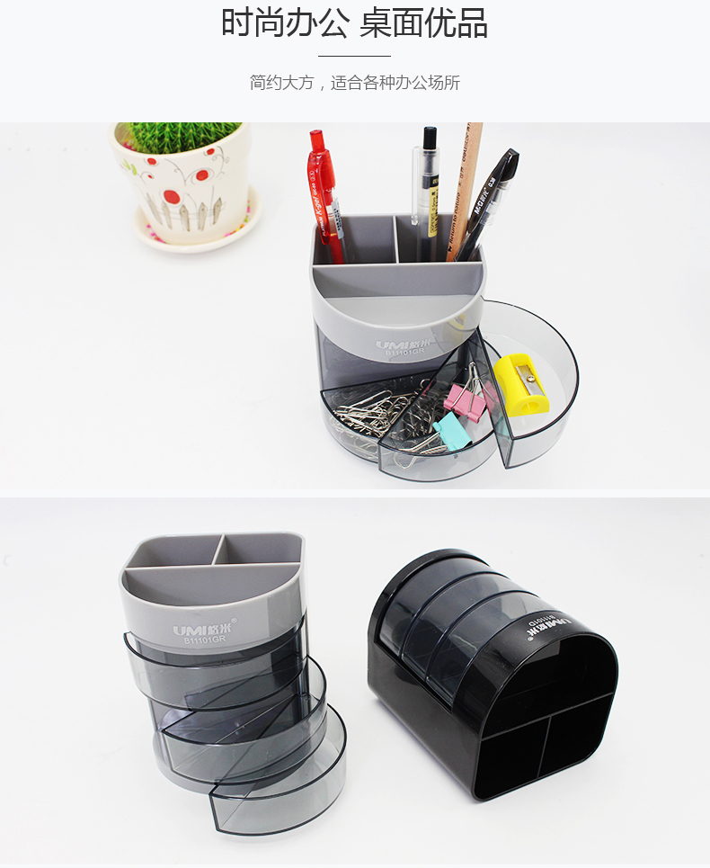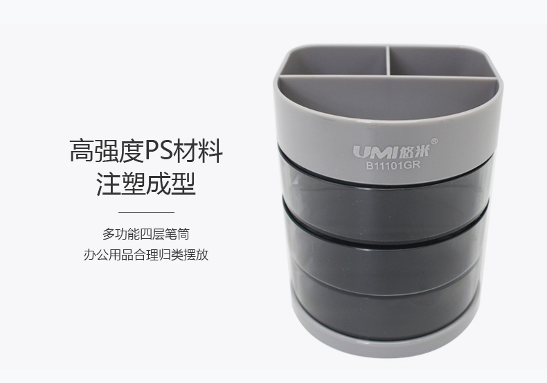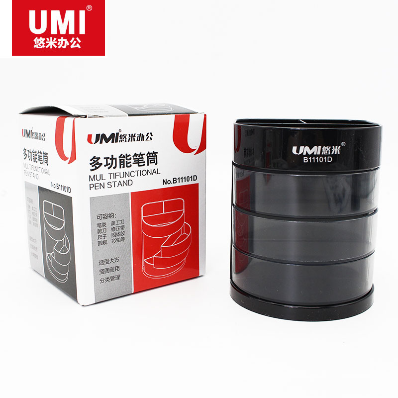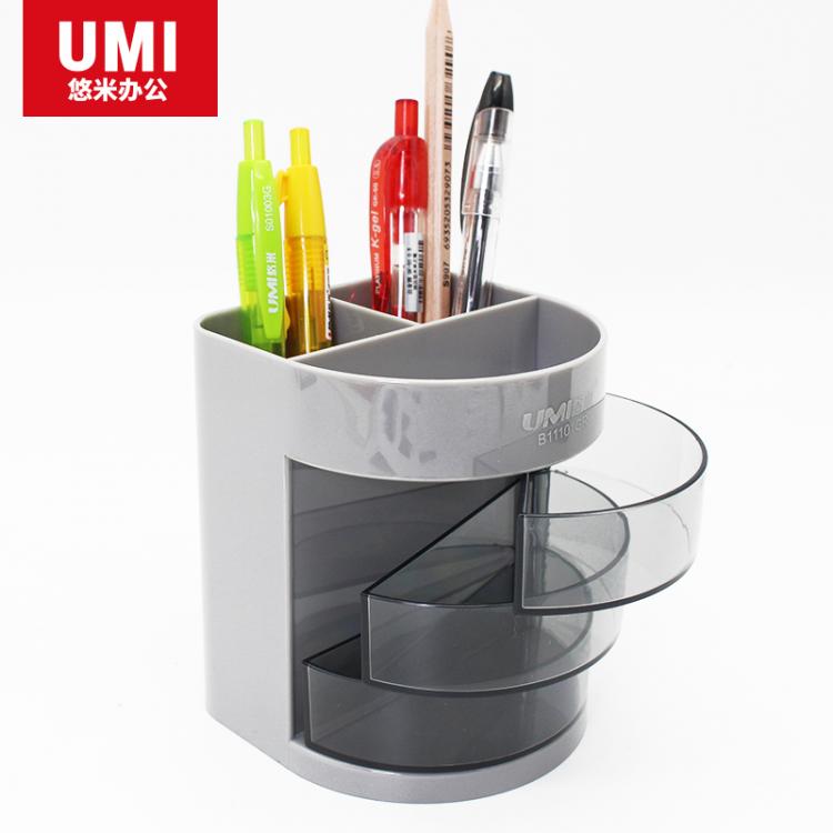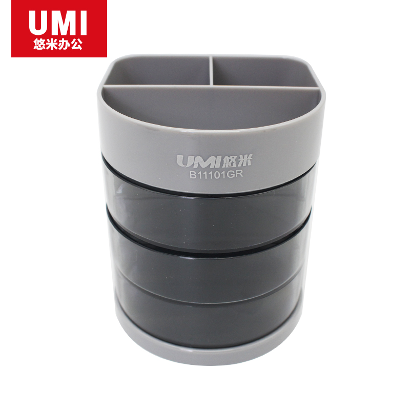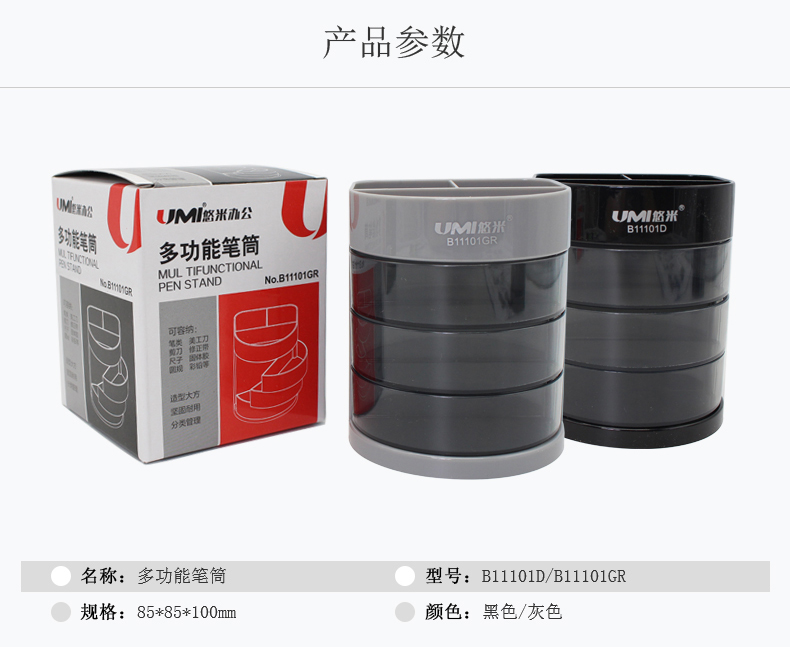 悠米(UMI)圆形塑料笔筒 B11101黑色/灰色