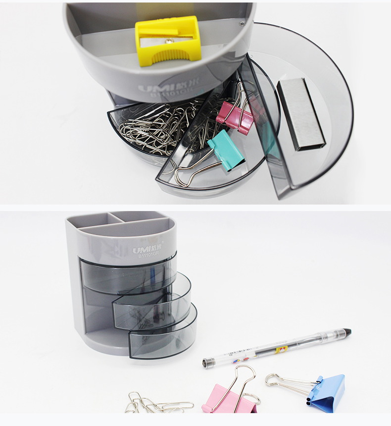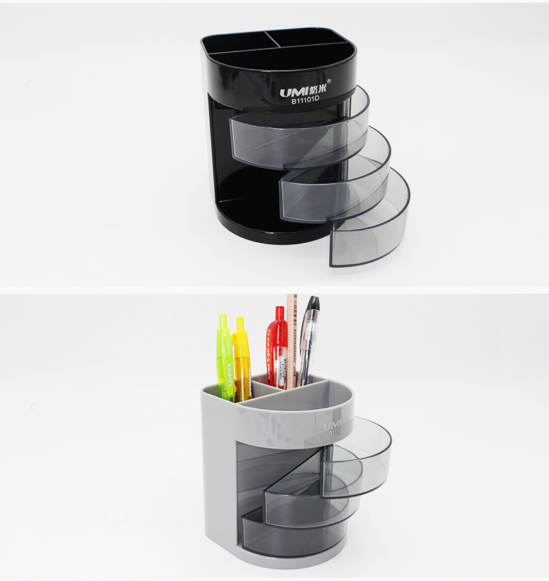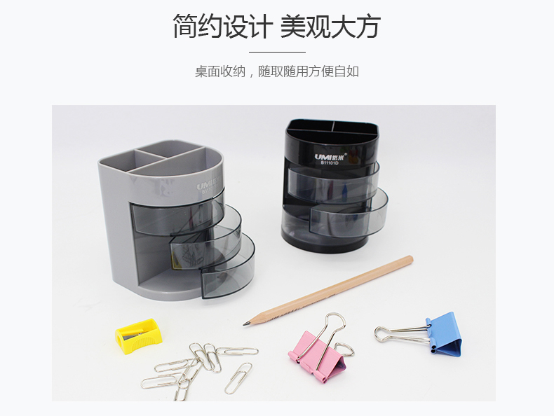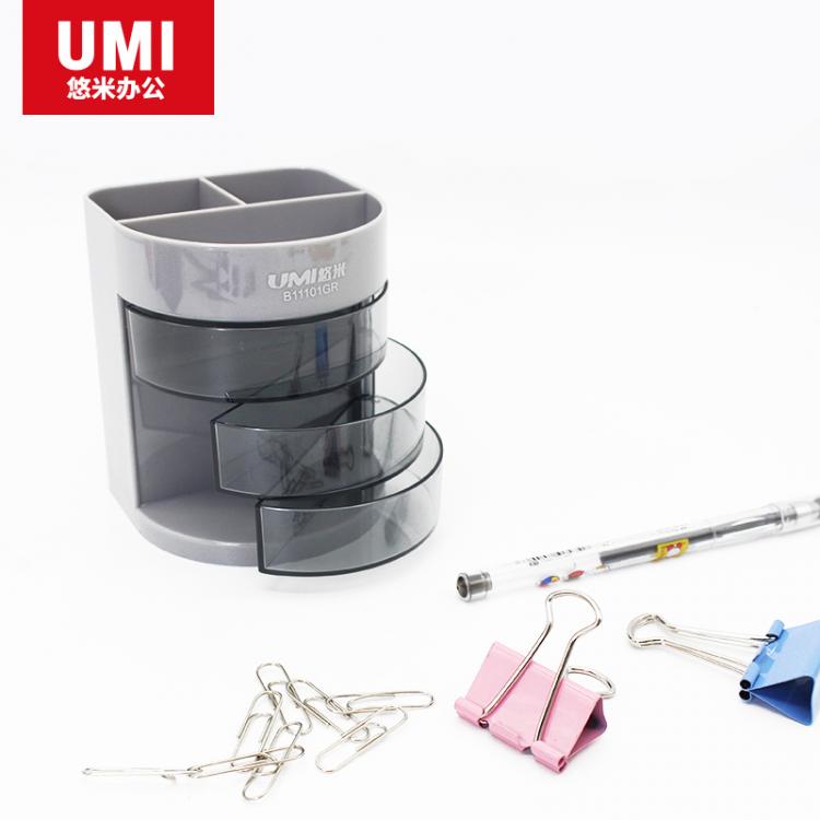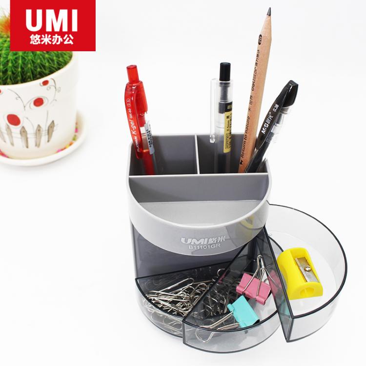 悠米(UMI)圆形塑料笔筒 B11101黑色/灰色