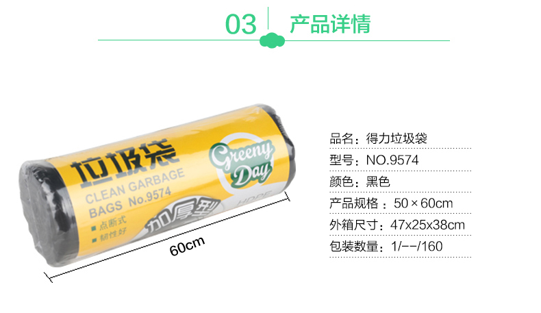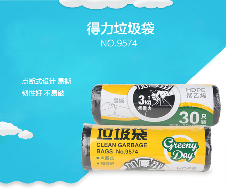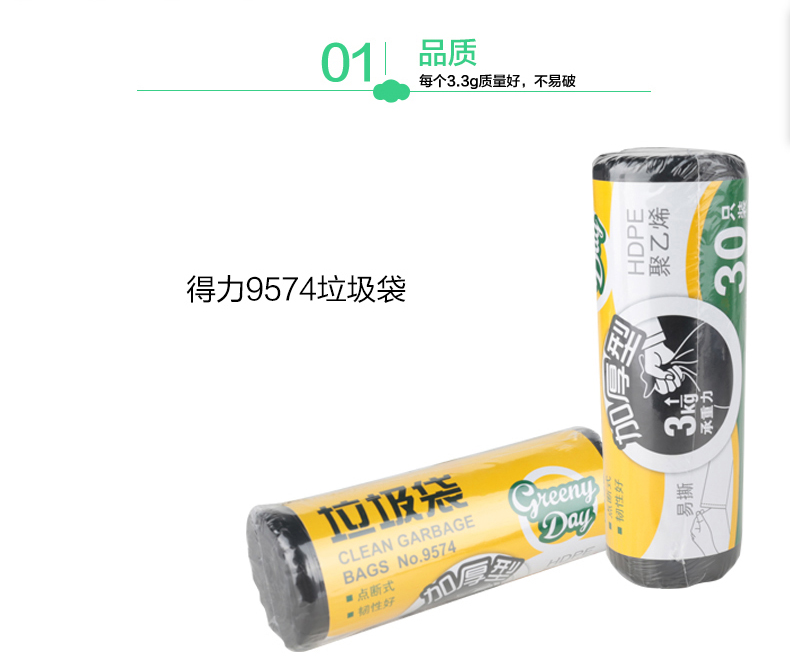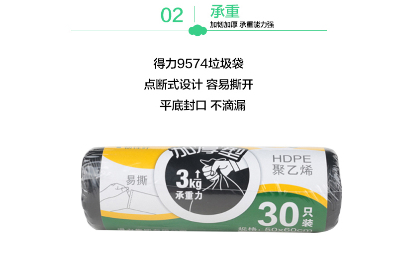 得力(deli) 9574(黑)垃圾袋50*59cm30只/...