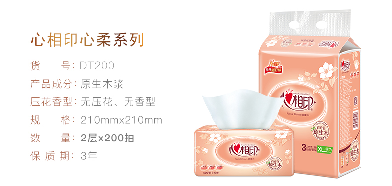 民用-心相印 DT200塑包面纸-200抽(大幅)