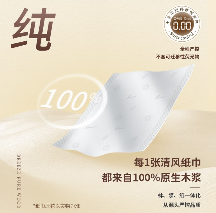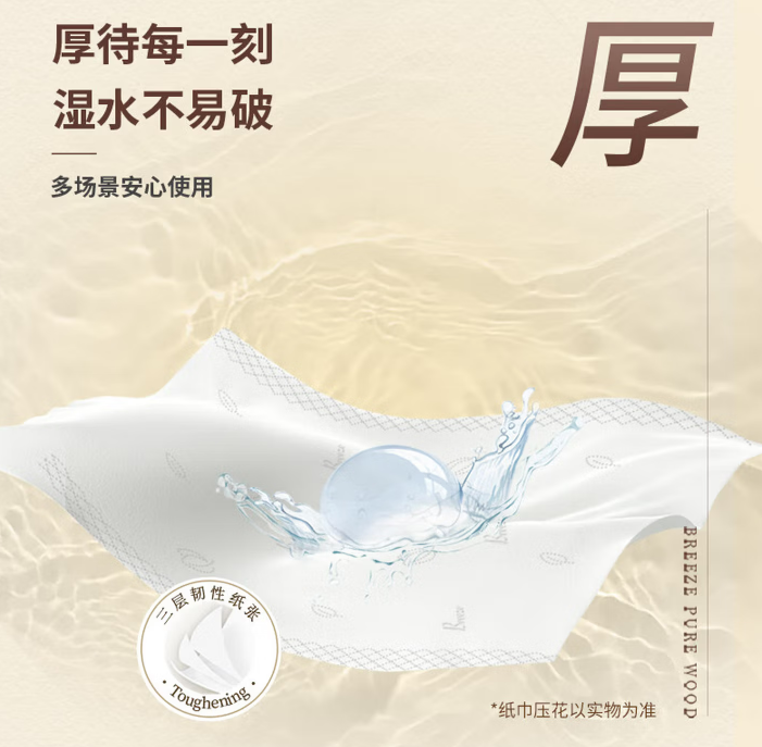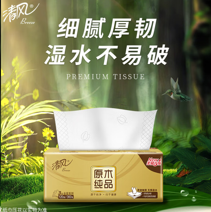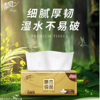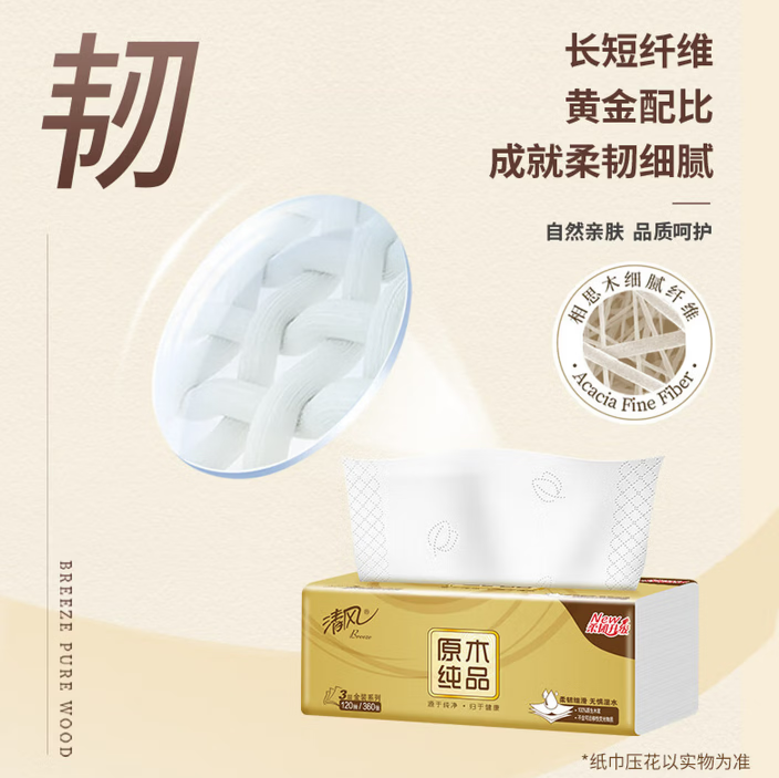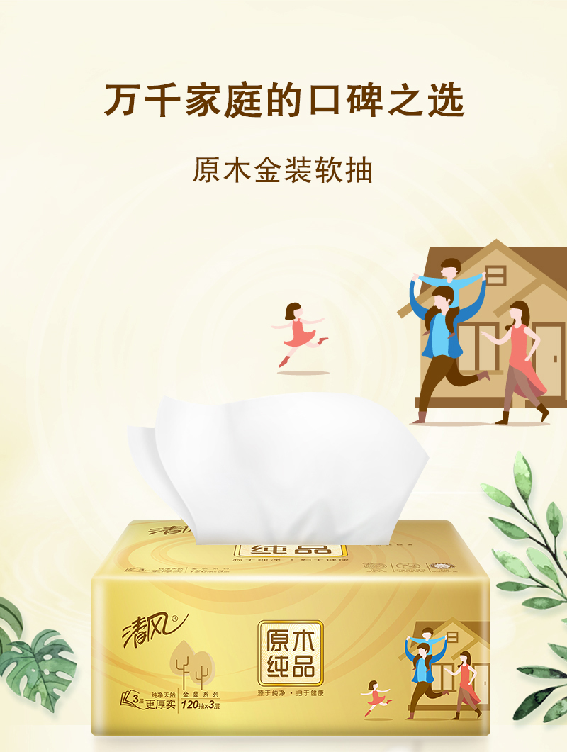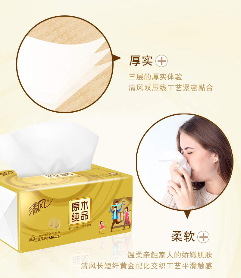清风 原木金装抽纸巾3层120抽24包柔韧整箱装